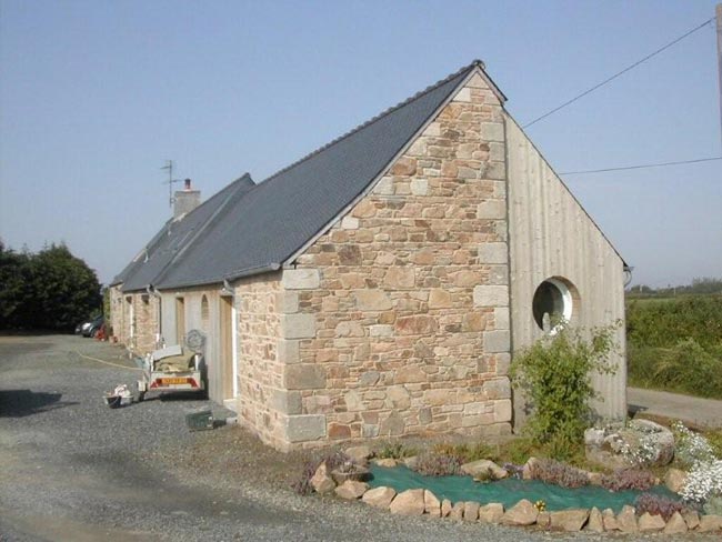 Extention avec parement pierres - Port-Blanc - Achitecte Alain HENRY.